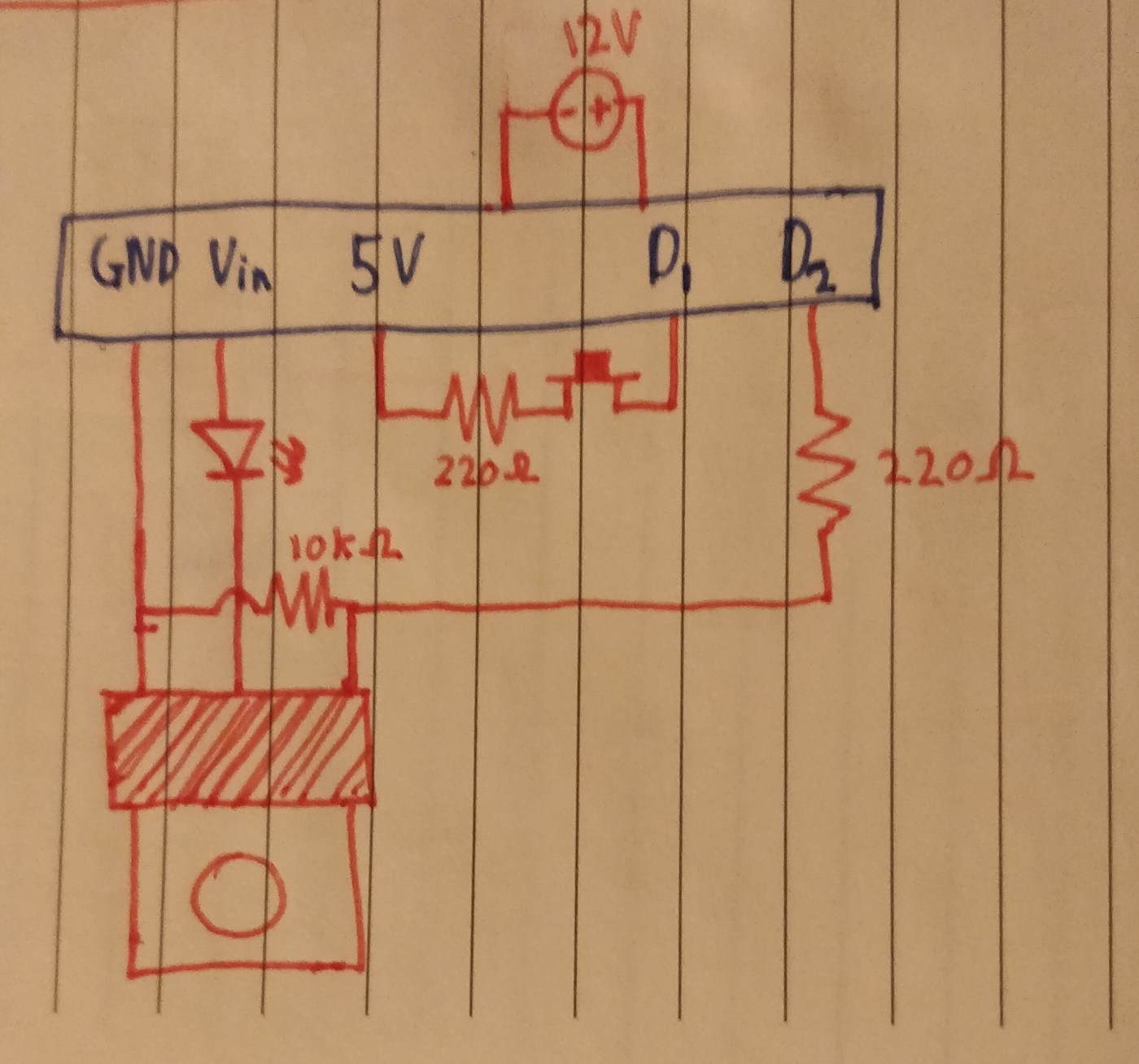 Just a reminder this is what the end circuit will now look like. Except the pins aren’t accurately labeled and there’s a grounding wire omitted. I think the omitted wire is superfluous anyway though.